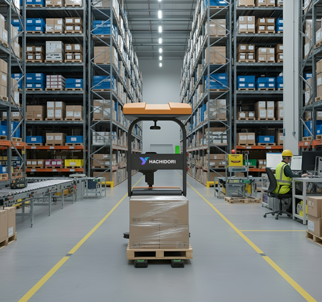 The autonomous pallet jack features a lifting stroke of 180mm, allowing it to raise pallets for smooth transport.
